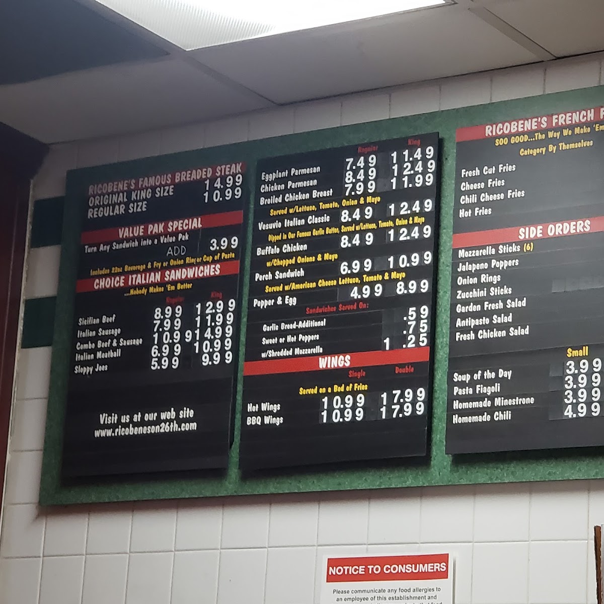 The menu extends to satisfying appetizers like mozzarella sticks, cheddar jalapeño poppers, and crispy zucchini sticks—ideal for sharing. Pizza enthusiasts will appreciate Ricobene’s dedication to Chicago-style pies, especially the coveted breaded steak pan pizza, perfect for dine-in or takeout.